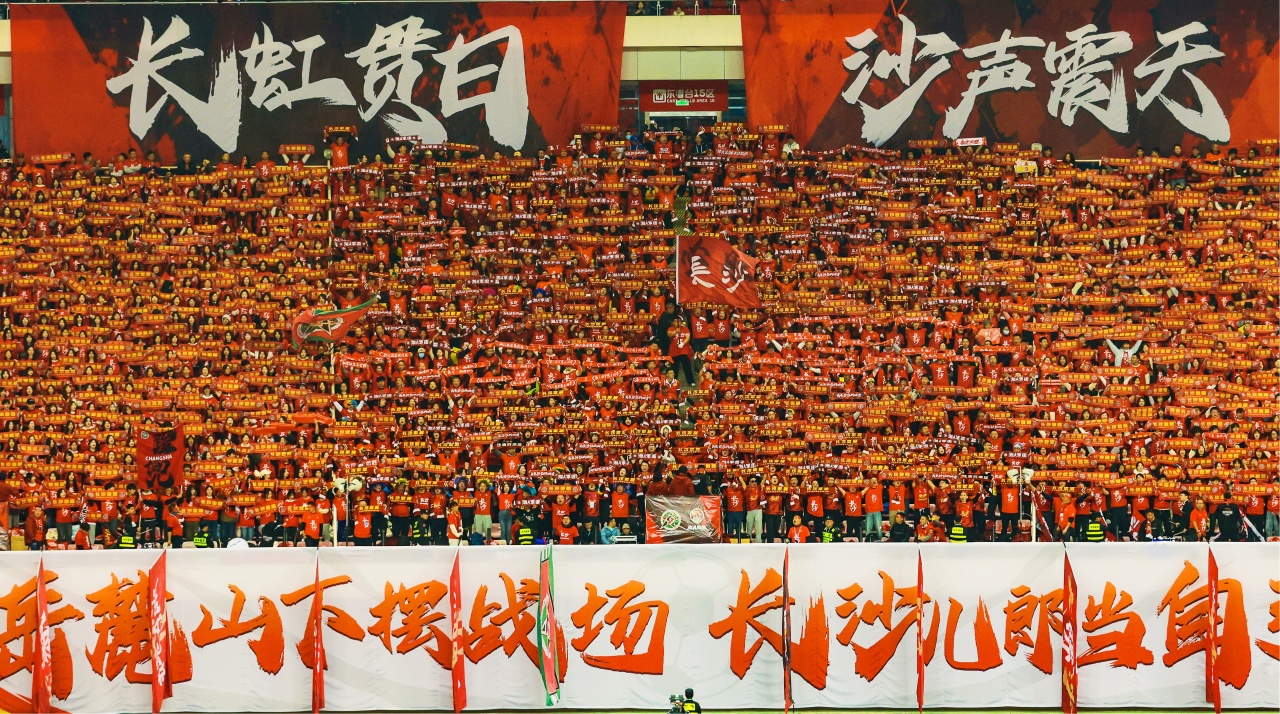 比賽中,由球迷看臺自主呈現的多幅巨型TIFO頻頻出圈,成為傳遞情感、連接城市的獨特載體:袁隆平院士主題TIFO溫情亮相,以“人就像種子,要做一粒好種子”的寄語傳遞初心,不僅在長沙主場深情呈現,更在賽后以實體形式移交其長期工作的懷化,實現跨城精神接力;“幸福長沙”TIFO致敬城市18年獲評最具幸福感城市榮譽;“英雄之城”TIFO聯動長沙天心閣與常德水星樓,緬懷抗戰先烈。
