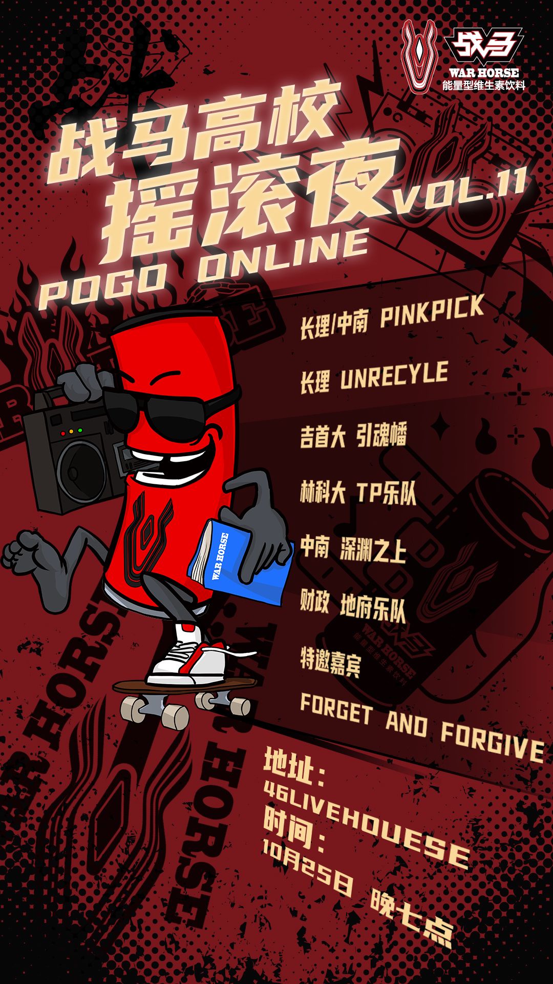 發送“戰馬高校搖滾夜”直播鏈接至朋友圈截圖發送至公眾號后臺,獲得抽獎資格。